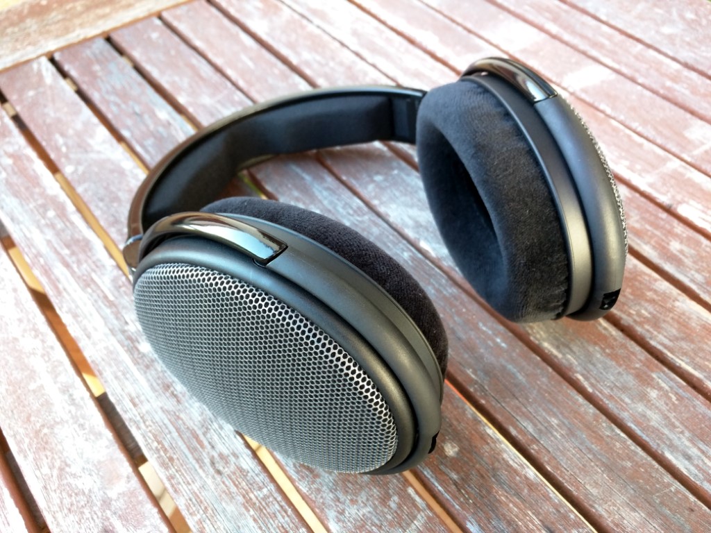 Man kann von dem etwas überholten Finish des HD650 halten was man möchte, es sieht, was die Beschaffenheit der Oberfläche angeht, insgesamt hochwertiger aus als das hochglänzende Schwarz des HD58X. Ehrlich gesagt würde es mich nicht wundern, kämen HD650 oder HD600 Bügel unter diesem Lack zum Vorschein... Auch habe ich den Eindruck, dass die Verarbeitung des unlackierten Kunststoffs rund um die Steckbuchsen bei diesem Jubilee Modell weniger gut ist als bei den größeren Brüdern der Serie. Insgesamt erscheint mir die Optik im Gesamten aber besser und moderner als bei den besagten, bereits seit Jahren erhältlichen Modellen. Der HD58X ist auffallend leicht und lässt sich dank seiner effizienteren 150 Ohm Treiber problemlos an mehr Geräten betreiben als man dies von den 300 Ohm Treibern gewöhnt ist. Selbst am Smartphone macht er richtig Druck - wenn man das möchte. Gegenüber den wirklich sehr offenen Hörern der 600er Serie kommt mir der HD58X etwas geschlossener vor, sowohl klanglich als auch optisch. Am echten Hörer lässt sich nämlich der Treiber rückseitig nicht erkennen, da zwischen Treiber und dem äußeren Gitter ein schwarzer Stoff angebracht wurde. Vergleicht mal meine Bilder oben mit denen des Eröffnungsposts, da sieht man den Unterschied sehr deutlich.