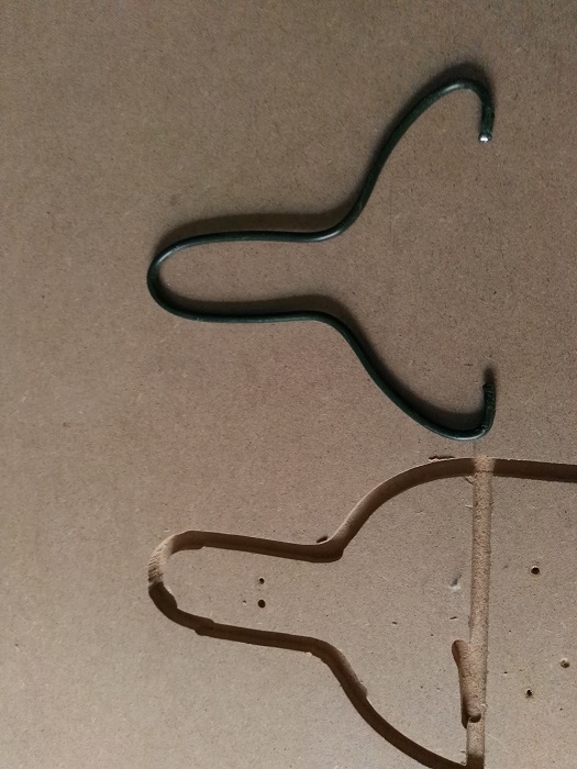Auch hatte ich vorher aus einem Stück Gartenzaundraht und einer Schablone versucht die Kopfbügelhalterung zu den Cup´s zu biegen.